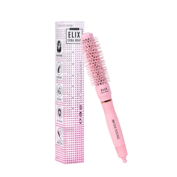 Sister Young ELIX Cera Heat to innowacyjna, ceramiczna szczotka okrągła, stworzona z myślą o profesjonalnych stylistach oraz miłośnikach domowej stylizacji. Dzięki powłoce ceramicznej i odporności na wysoką temperaturę, zapewnia równomierne rozprowadzenie ciepła, przyspiesza suszenie i chroni włosy przed uszkodzeniem. Specjalnie zaprojektowane włosie antystatyczne gwarantuje gładki, lśniący efekt bez elektryzowania się pasm, a dodatkowe wygodne akcesoria (m.in. wyjmowany szpikulec) ułatwiają precyzyjne modelowanie